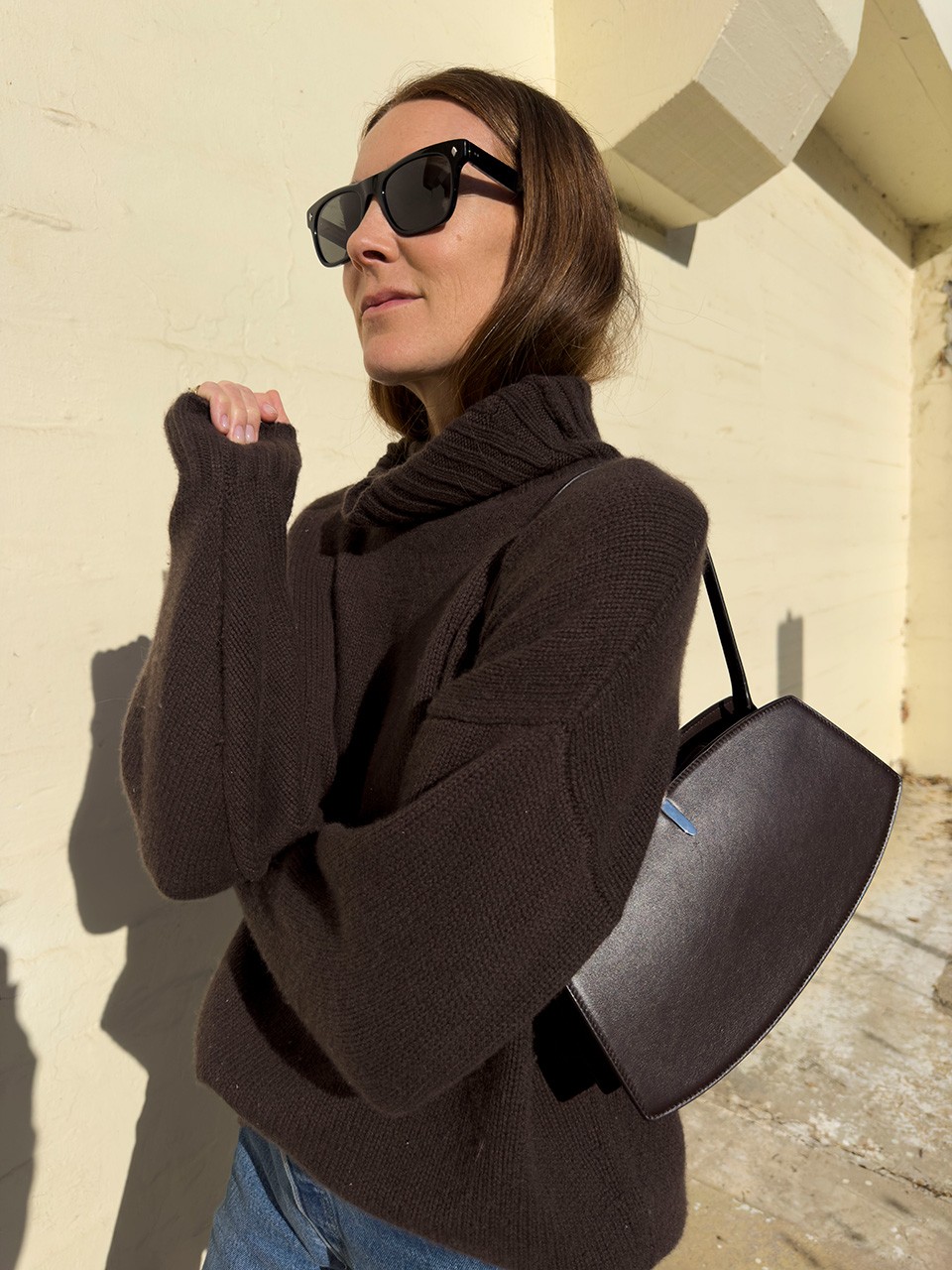 I put on this chocolate cashmere Jenni Kayne knit the other day—easily the most worn style these past few months for me—with the Savette bag and I’ve been styling the two together off and on ever since. I love the oversized feel of the knit styled with the petite, polished bag, a combo I had to share.