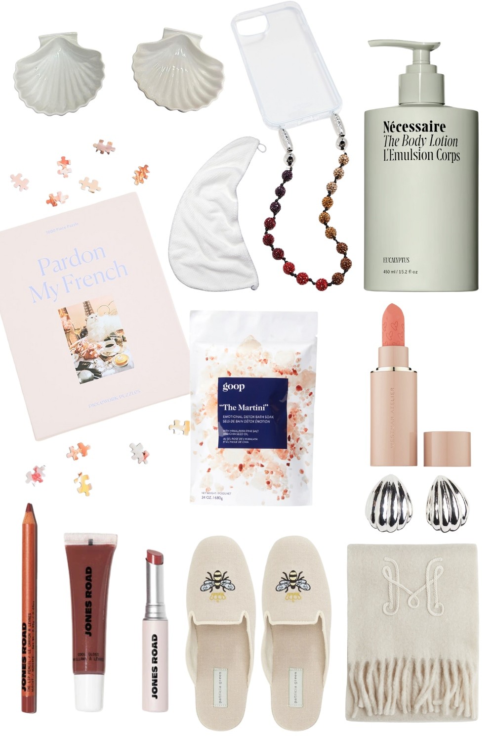 Our kitchen during the holidays gets loads of traffic which makes it the first place I think of if I’m getting a gift for someone who entertains a lot. Simple things like beautiful dish towels, specialty olive oil (my personal favorite) or salt, a beautiful dish or elevated cleaning products (just discovered this brand and I’m obsessed!) are not only thoughtful but essential. And for those that want nothing to do with being in the kitchen a beautiful pair of earrings, a gorgeous enamel charm, this lip set or a sparkly phone case (Ossa New York cases is my number one gift for all my fashion friends, so many options!)