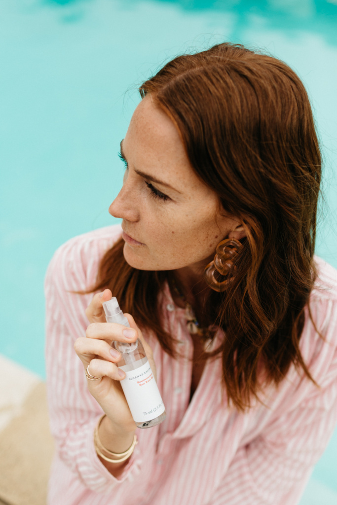 The first place to start when it comes to prepping your skin for the Summer is exfoliating. I like to use a copper dry brush before my nighttime baths because it not only gets the dead skin off but it promotes blood flow while detoxifying and helping your lymphatic system. My other trick is using African Botanics Mineral Body Scrub before hopping in the shower, the key being use it on dry skin. For my face I’ve been loving Susanne Kaufman Glow Mask that uses only natural ingredients to remove dull skin and stimulates cell metabolism promoting collagen production—translation it makes your skin super fresh and glowy.