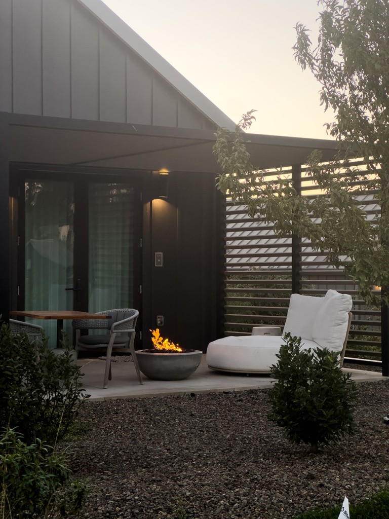 We arrived on a Friday afternoon to Stanly Ranch and it was toasty warm (which I loved) and we zoomed past a lively pool scene that I couldn’t wait to jump right into. The contemporary ranch style cottages are sprinkled around, each one with their own outdoor fire pit and lounge, and the rooms were stunning—the natural light pouring into our bathroom in the mornings was my favorite part. Normally, I need a minute after flying/arriving but this was different. The Aero flight was such a breeze we immediately dropped our things and went to explore the resort, wine in hand.