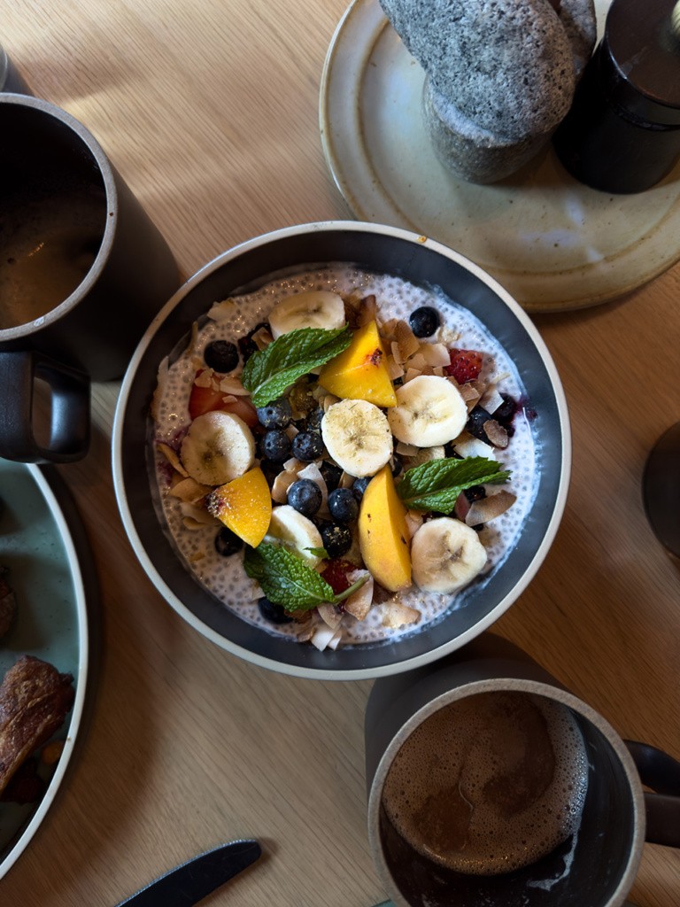 We eventually made our way to Bear for dinner which was such a fun scene. Between the open kitchen set up, a sommelier that kept happily letting us taste a few things he was opening and an insanely delicious meal, we were in heaven. Some standouts that we tried and loved was the short ribs with garden herbs, the sourdough ice cream dessert and the beets side dish. We returned for breakfast both mornings (it’s free with the package!) and loved the coconut chia pudding and apple pancakes—which instantly put me in the Fall mood.