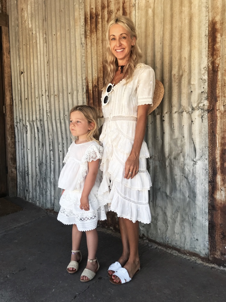 After spending time with her this weekend we (Elin included) were all a little obsessed with everything she wore. From a handful of Love Shack Fancy Dresses to random lacy ribbons she was using as hair ties and her golden tan that she’s always been known to have. She gave Elin a little homemade fabric anklet and it’s a “look” she so into she wants me to find more for her. So this morning I’m hunting down vintage fabric, lacy ribbons and silky hair scarves for some feminine summer looks.